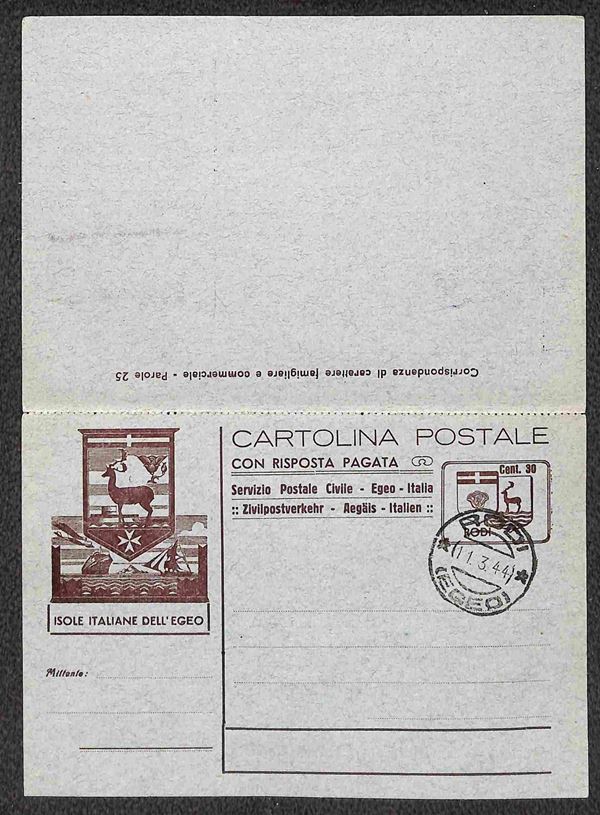 Pro Assistenza Egeo (118/124) serie completa su intero postale 30 cent (C3) - Rodi 11.3.44