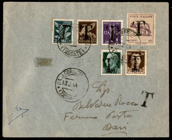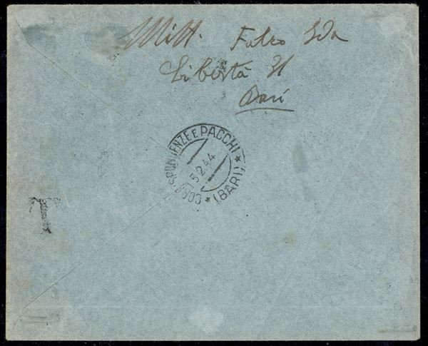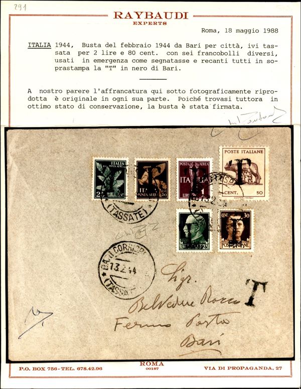 Provvisori - T a mano - sei valori (gemelli) su busta Fermo Posta - Bari 13.12.44 - cert. Raybaudi