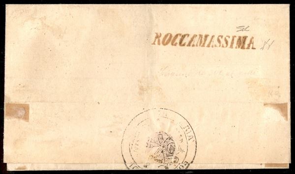 Roccamassima (rosso - P.ti R2/3) - lettera in franchigia dalla Segreteria Comunale - destinazione cancellata a penna - annullamento rarissimo - A. Diena + L. Gazzi