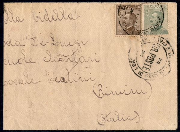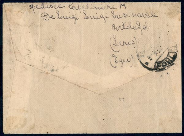 RR Poste/Base Navale di Porto Lago di Leros - busta per Rimini (arrivo del 5.5.26) con affrancatura di Regno (84+184)
