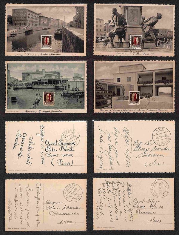 RSI - 1944 - Bellissima collezione del 30 cent (492/II) tiratura di Firenze - le 100 posizioni del foglio su altrettante cartoline (tipo Maximum) regolarmente viaggiate da Bolgheri il 20.3.44 - raro insieme probabilmente unico