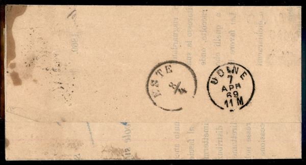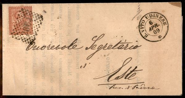 S. Vito Udinese (P.ti 10) + annullo numerale a punti 2664 su stampato affrancato con 2 cent (T15) per Este del 6.4.69