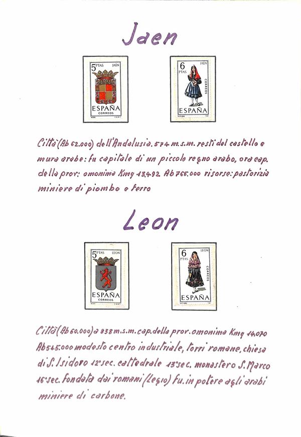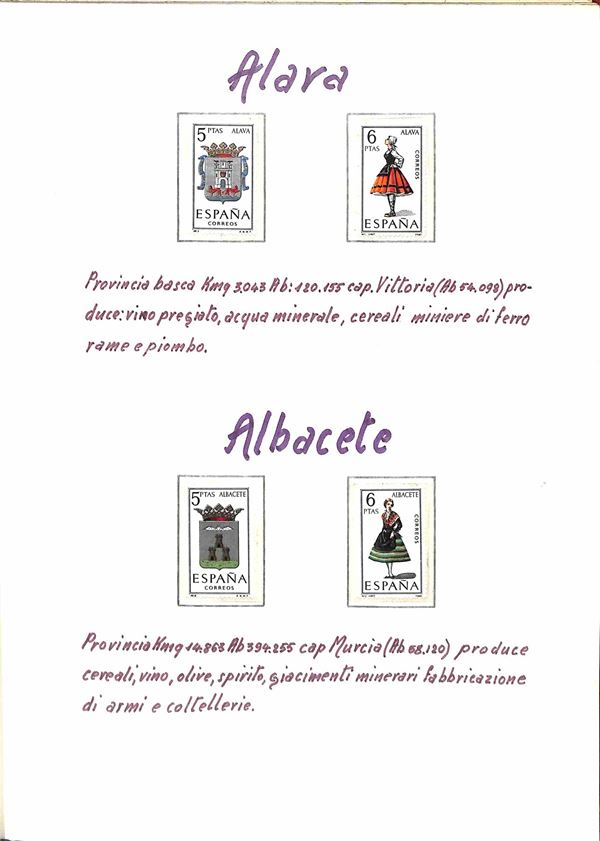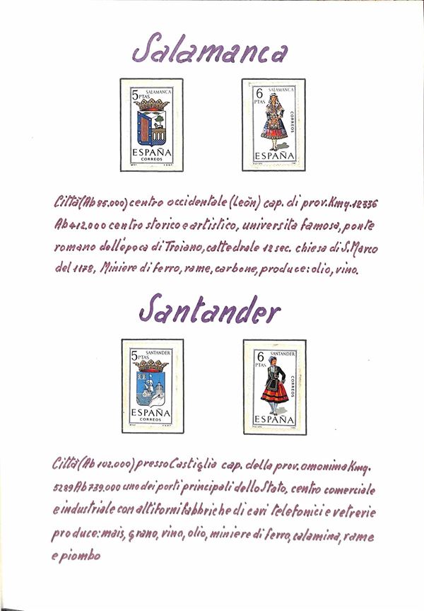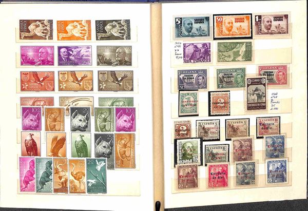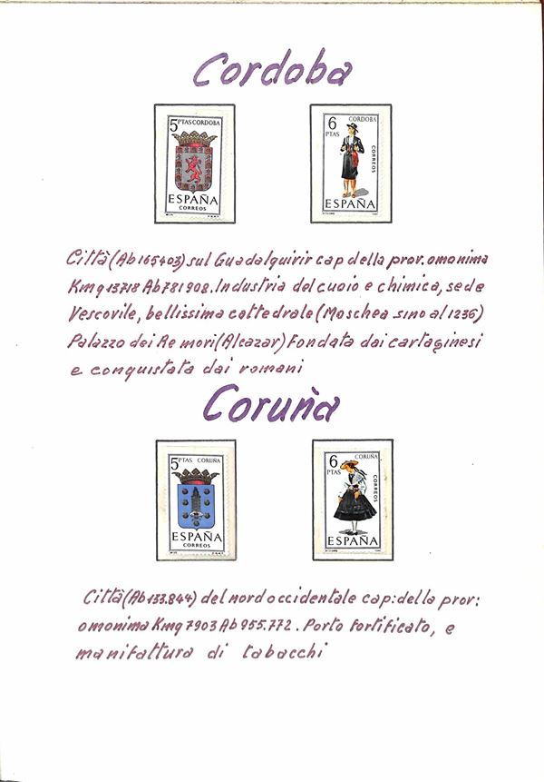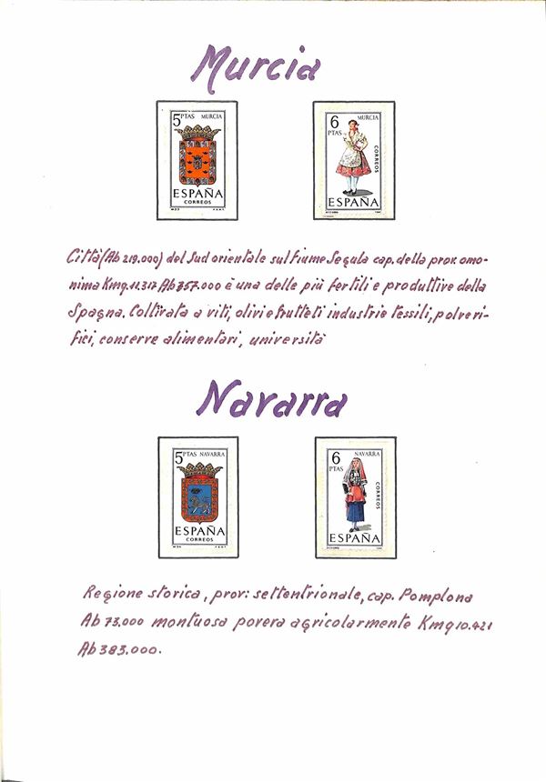 SPAGNA - 1907/1959 - Collezione di valori e serie nuove del periodo in un piccolo classificatore pił collezione degli Stemmi e Costumi Spagnoli montata su album artigianale - da esaminare