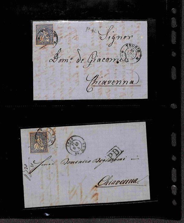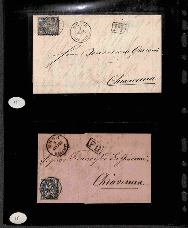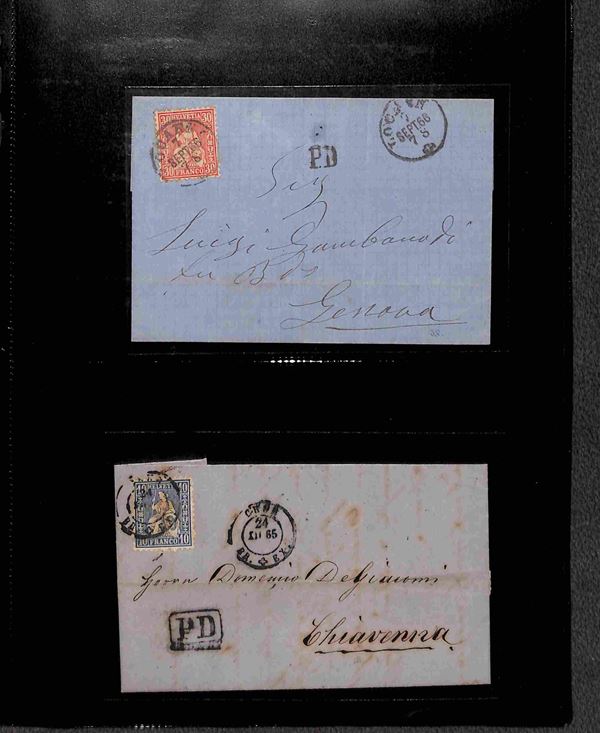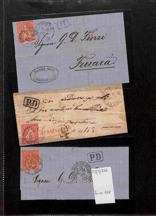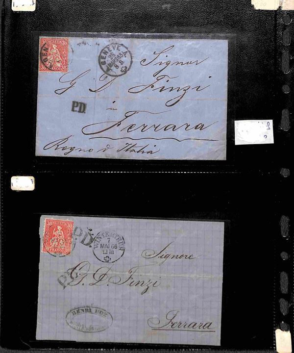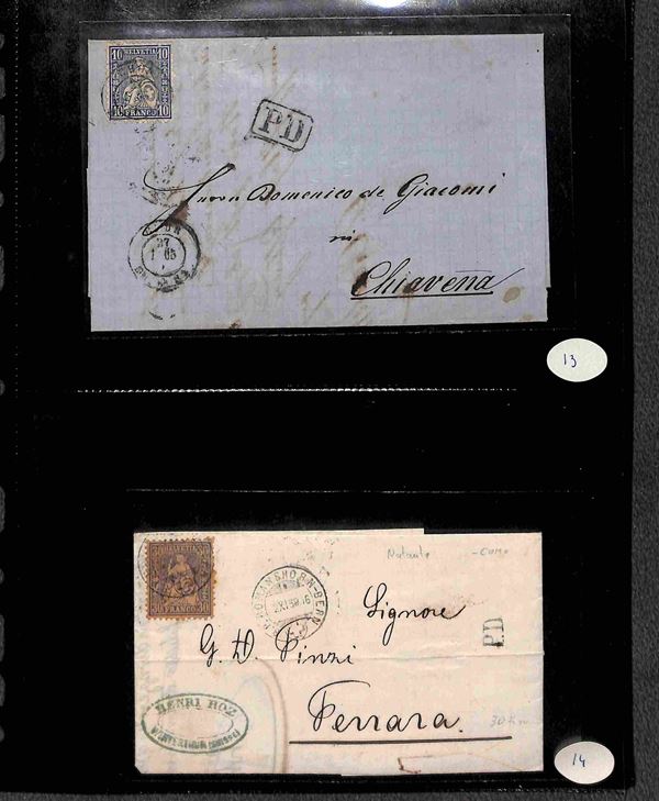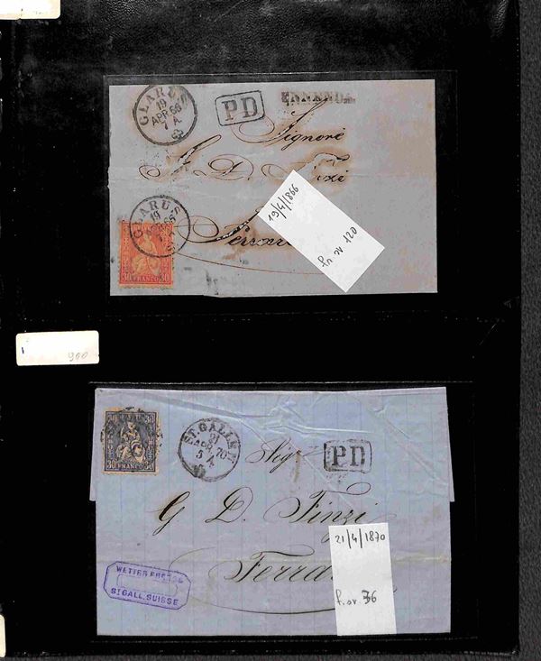 SVIZZERA - 1860/1900 circa - Insieme di 27 buste e lettere del periodo con affrancature per lo pił isolate montate su 6 pagine di album - alcune interessanti presenze - merita esame
