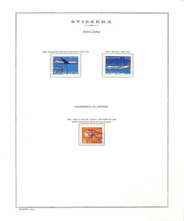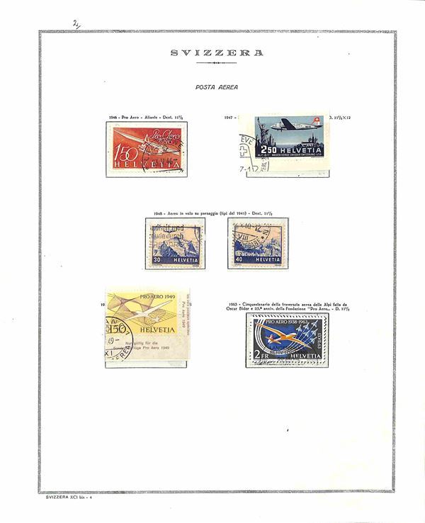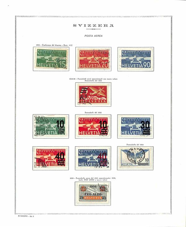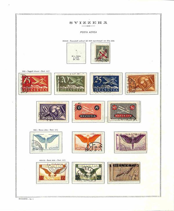SVIZZERA - 1919/1972 - Collezione di valori e serie complete del periodo di Posta Aerea montati in fogli Marini - tutti usati - valore di catalogo oltre 800 €