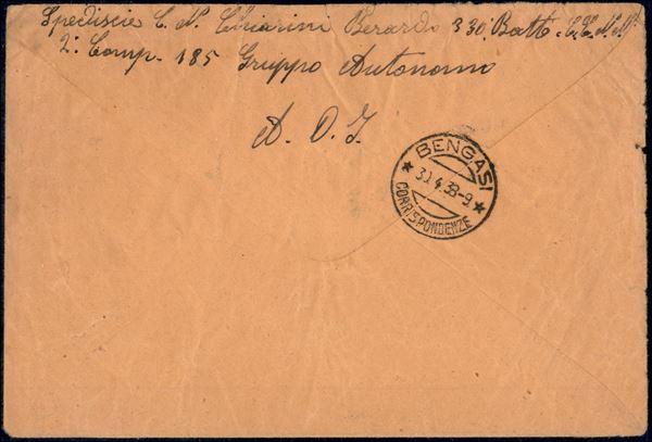 Ufficio Posta Militare 130/E - coppia del 7 1/2 cent (116 Somalia) + 10 cent (205 Eritrea) + 75 cent (320 Regno) - busta per Bengasi del 3.4.38