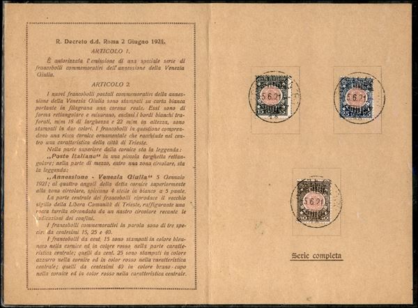 Venezia Giulia (113/115) - serie completa usata nel giorno d'emissione (Trieste 6.5.21) su folder ufficiale FDC