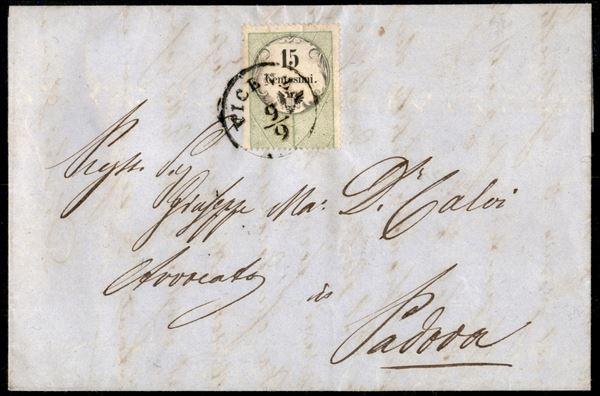 15 cent (7) su lettera da Vicenza a Padova del 9.9.56