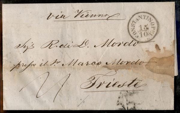 1855 - Disinfettata - lettera da Costantinopoli a Trieste via Semlin