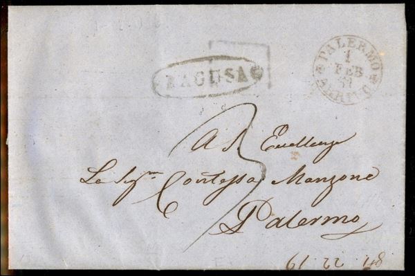 1861 (1 febbraio) - Ragusa - piego per Palermo