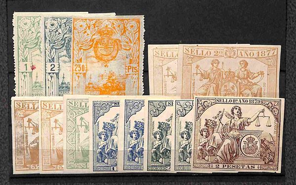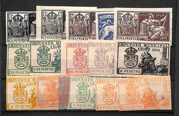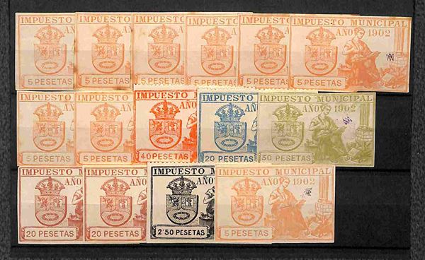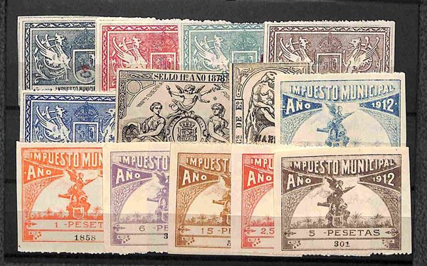 1868/1912 - Impuesto Municipal - 66 marche nuove e usate del periodo montate su cinque cartoncini