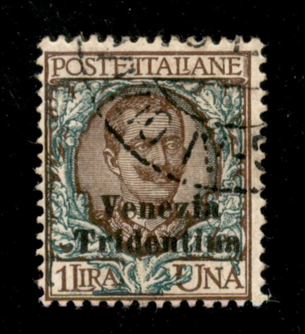 1918 - 1 lira Floreale (27b) usato - doppia soprastampa - cert. AG (1.000)