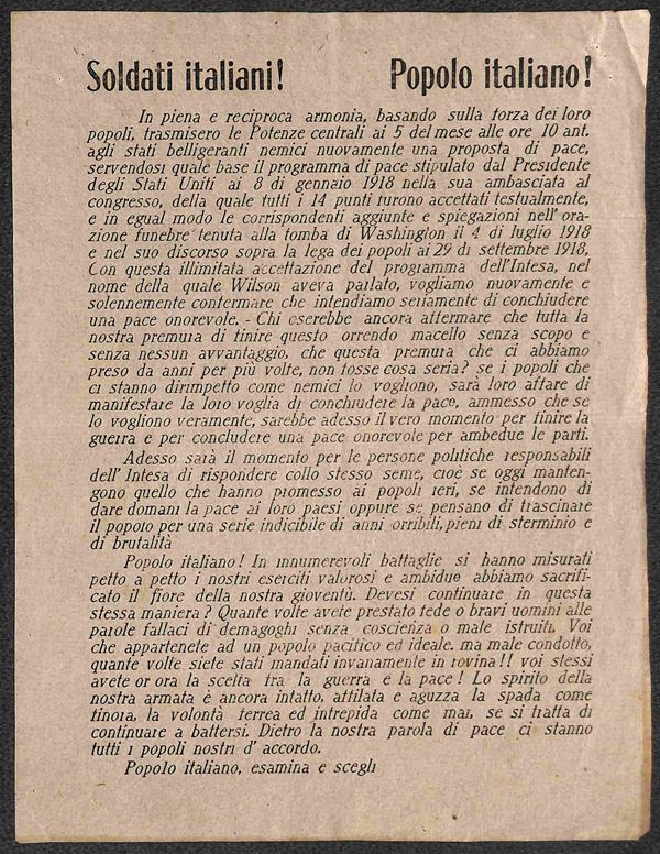 1918 (6 ottobre) - Soldati Italiani! Popolo Italiano - volantino