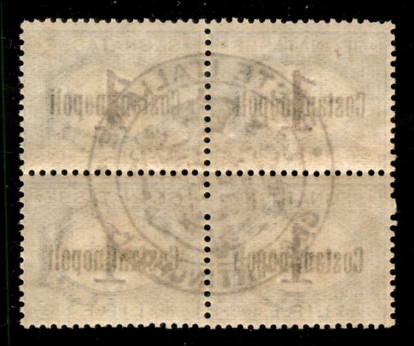 1922 - 1 lira (4) - blocco di quattro con bollo di controllo al centro - gomma integra - molto bella