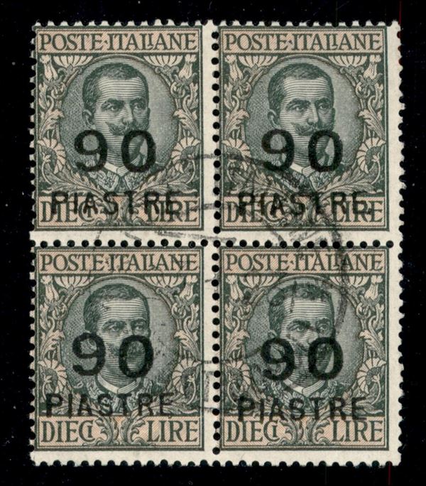 1922 - 910 piastre su 10 lire (67) - quartina usata - molto rara - Oliva + G. Bolaffi + Brunn