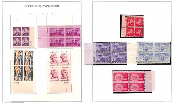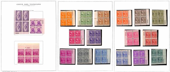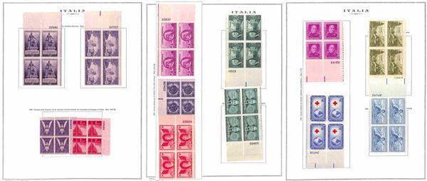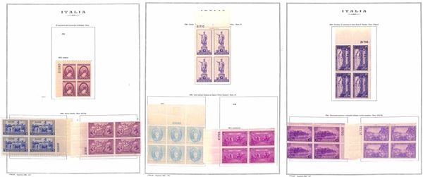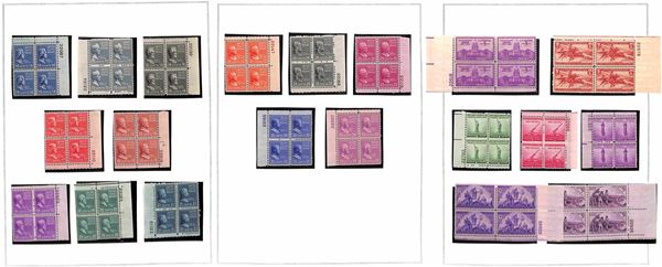 1922/1958 - Collezione di 119 Plate Blocks del periodo montati artigianalmente su 29 fogli d'album Marini (notati Scott 554+627+628+804/31) - gomma integra e originale - interessante da esaminare