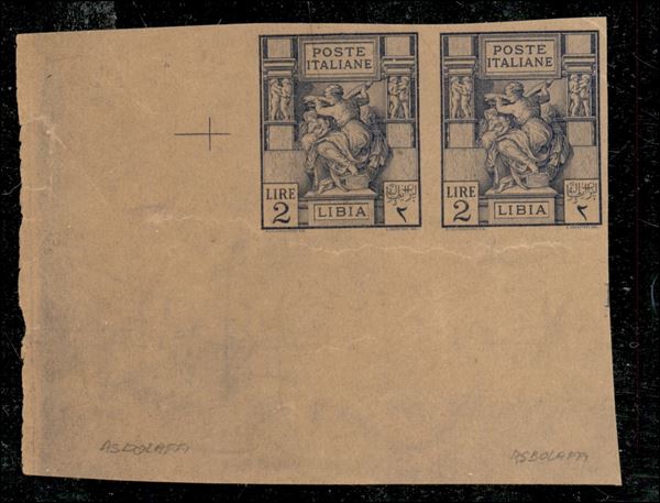 1924 - Prova di Stampa - 2 lire violetto (P43A) - coppia angolare - sempre senza gomma - Oliva