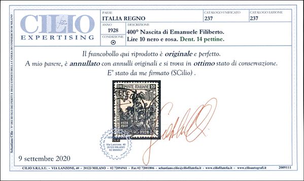 1928 - 10 lire Filiberto (237) usato