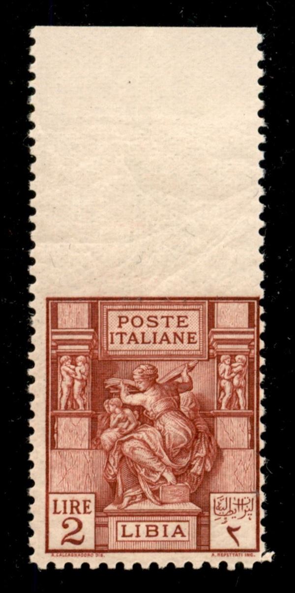 1929 - 2 lire Sibilla (57c) non dentellato in alto - gomma integra - cert. AG