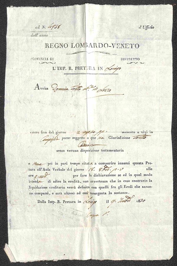 1930 (9 settembre) - Agente Co.ne di Lozzo - circolare a stampa da Lonigo