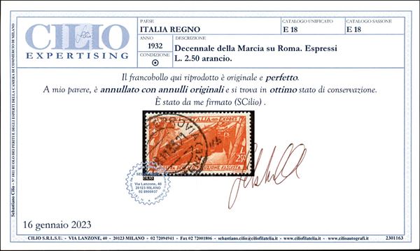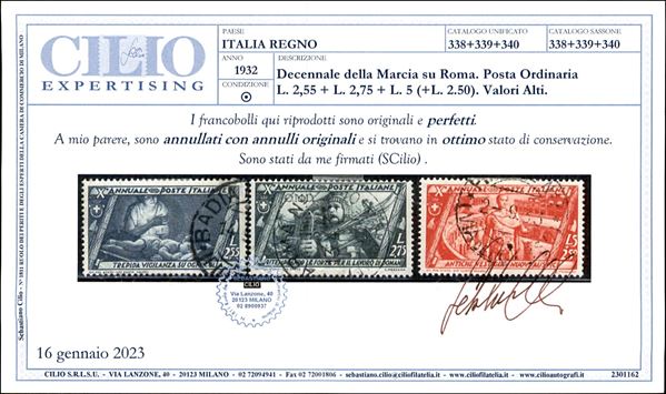 1932 - Marcia su Roma (325/340) + Aerea (42/43) + Espressi (17/18) - emissione completa - 20 valori usati - cert. Cilio
