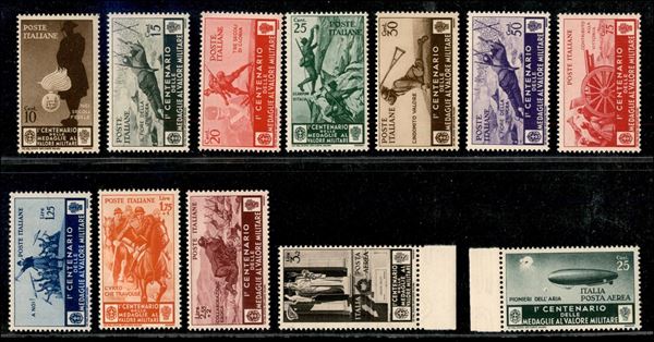 1934 - Medaglie al Valore (366/376 + Aerea 74/82) - serie completa P.O. + P.A. - gomma integra