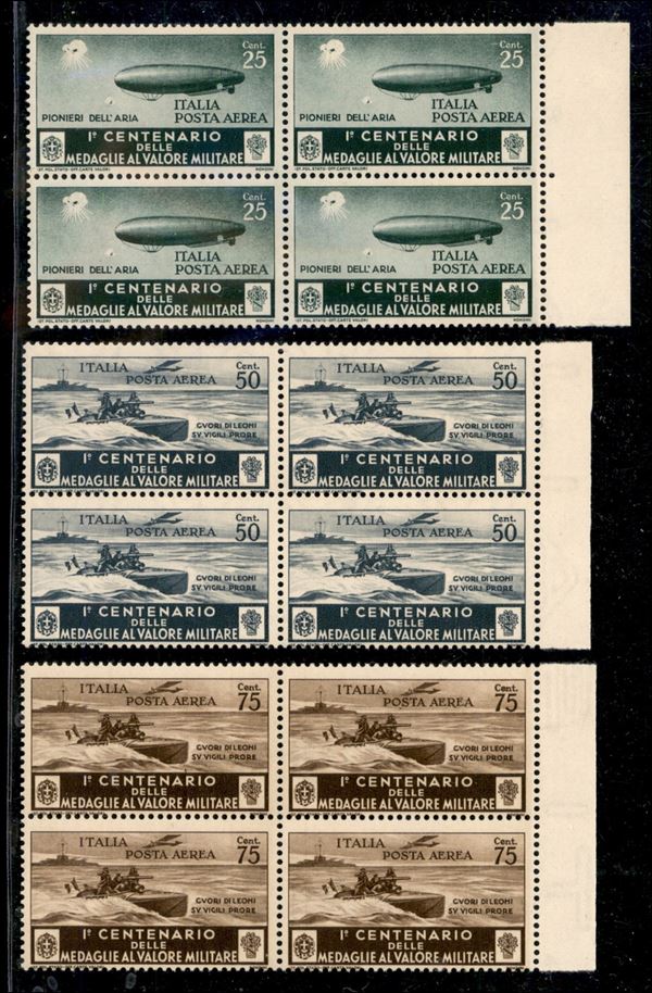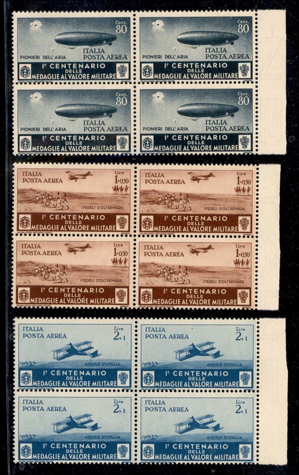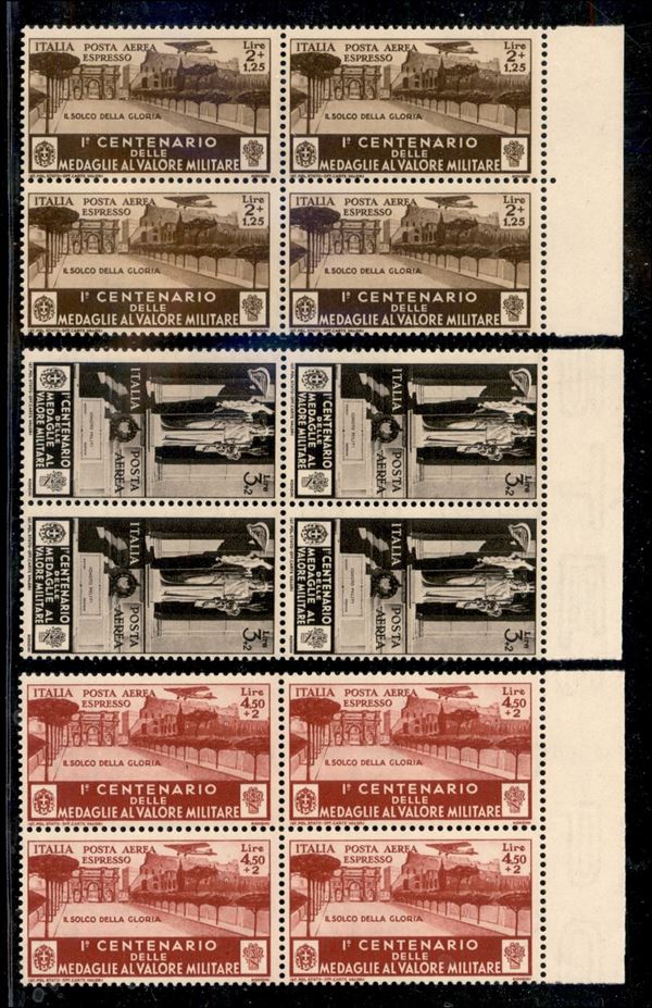 1934 - Medaglie al Valore (74/82) - serie completa in quartine - gomma integra (1.100)