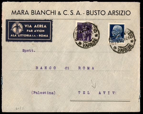 1939 (20 marzo) - aerogramma da Busto Arsizio a Tel Aviv