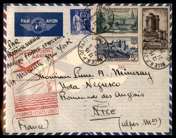 1939 (24 maggio) - Marsiglia New York - aerogramma del volo