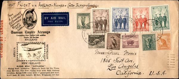 1940 (5 luglio) - AOTEAROA - Primo Volo Auckland Noumea Canton Island Honolulu - aerogramma da Sidney a Los Angeles