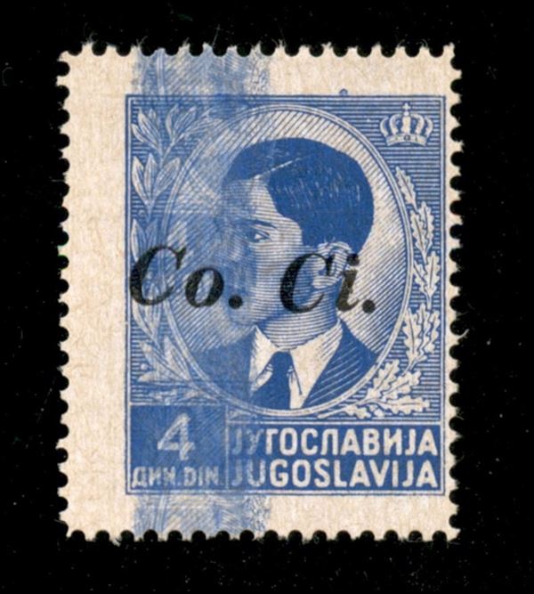 1941 - 4 din (7) con doppia stampa della cornice (a sinistra - spostata in alto) - non catalogato