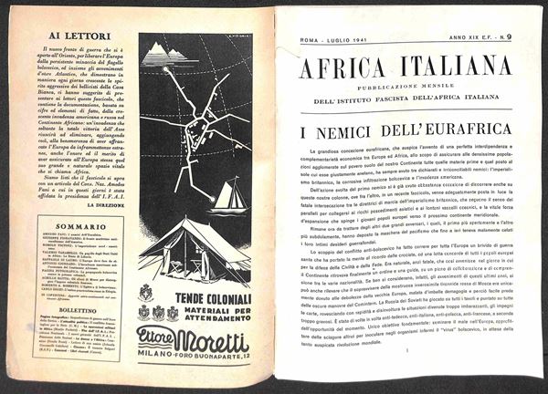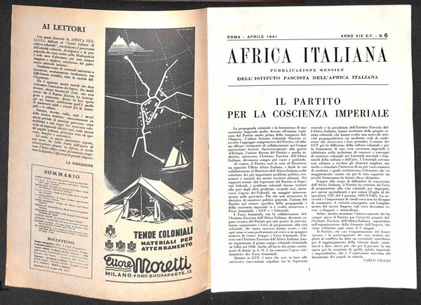 1941 (marzo/luglio) - Africa Italiana - quattro fascicoli della rivista (29/33 - n. 5 + 6 + 7/8 + 9) - in perfetto stato di conservazione