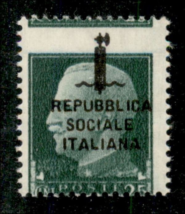 1944 - 25 cent (491zb) con dentellatura orizzontale e soprastampa spostate in alto - gomma integra (vetrificata)
