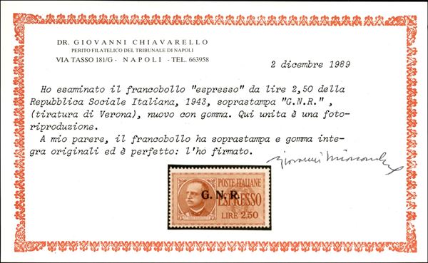 1944 - 2,50 lire (20) - errore R punto piccolo - nuovo con gomma garantita originale integra - non catalogato - cert. G. Chiavarello