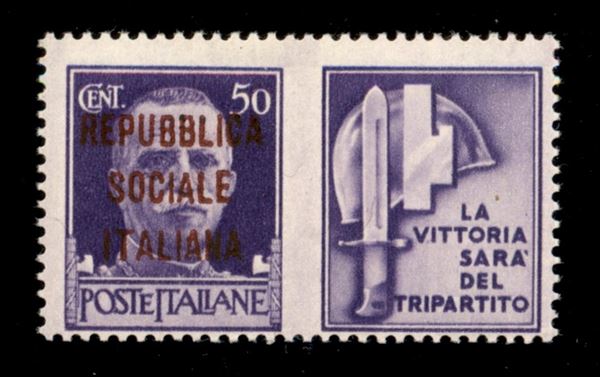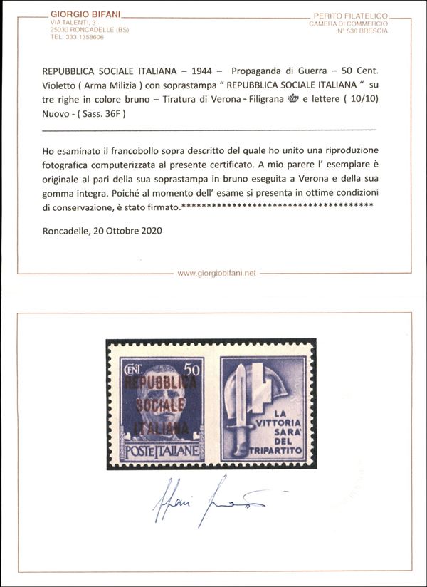 1944 - 50 cent Milizia (36F) con soprastampa bruna - gomma integra - cert. Bifani