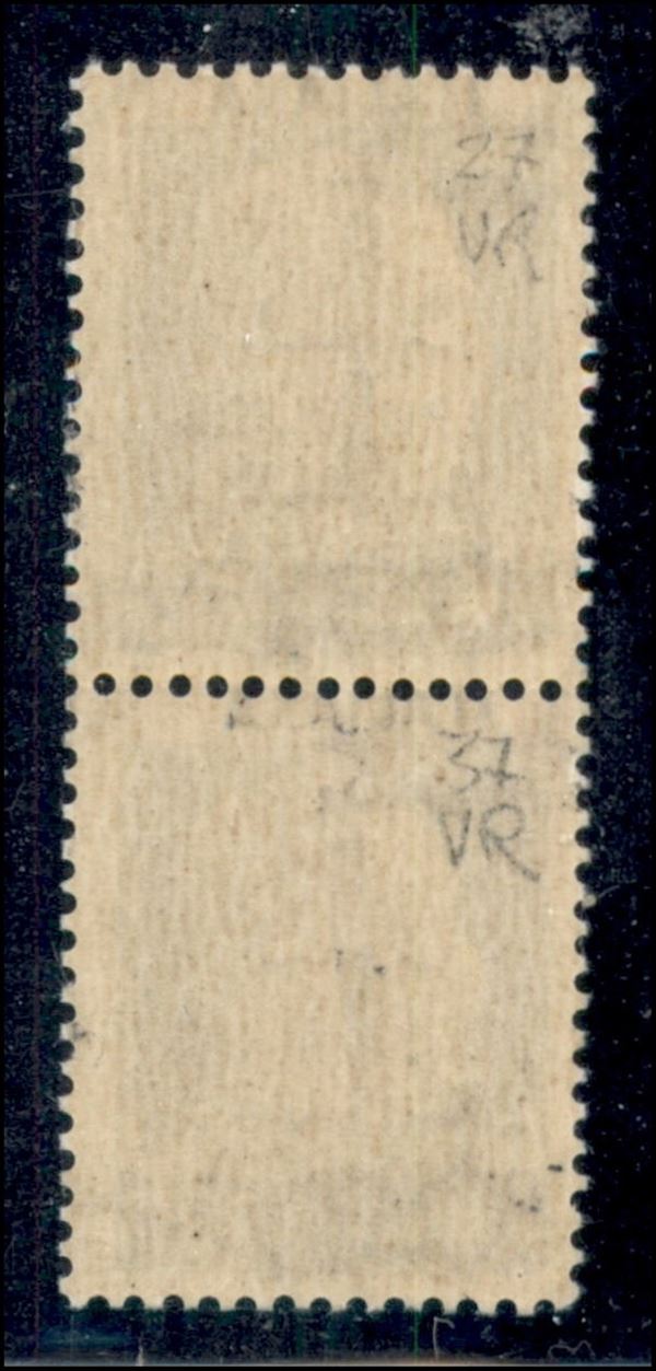 1944 - Coppia del 25 cent (491b) con doppia soprastampa (una a cavallo) - gomma integra