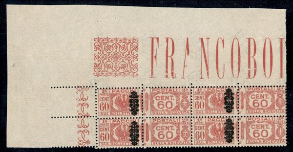 1945 - Quartina angolare del 60 cent (53c) con soprastampe a sinistra - gomma integra