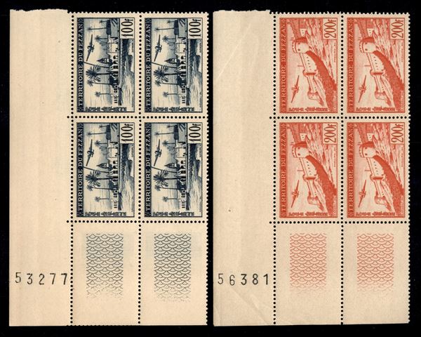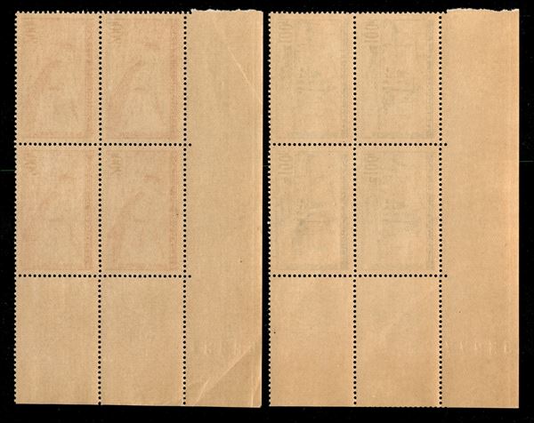 1951 - Aerea (3/4) - insieme di 2 valori in quartina angolo di foglio - gomma integra