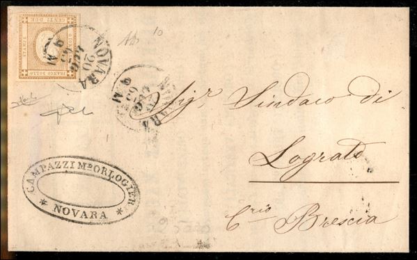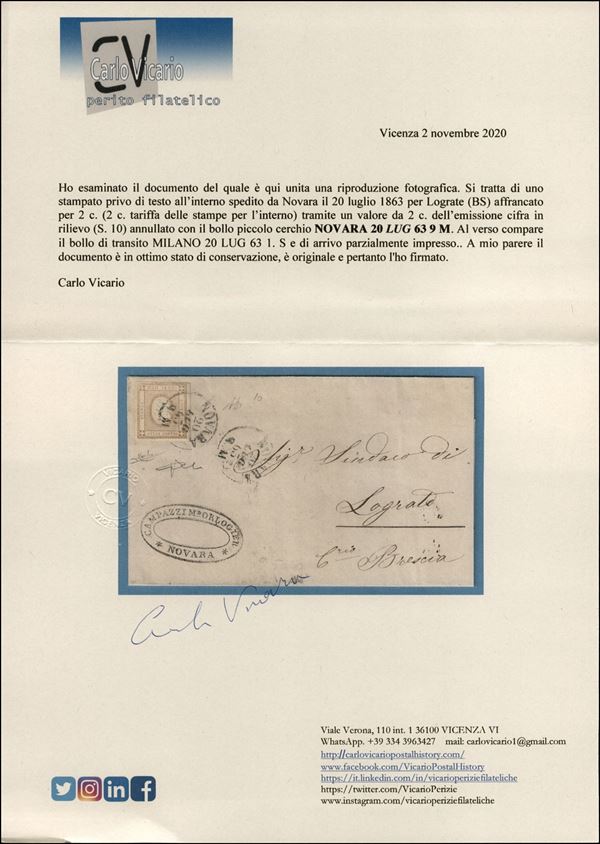 2 cent (10) su circolare da Novara a Lograto del 20.7.63 - Diena + Raybaudi + cert. Vicario