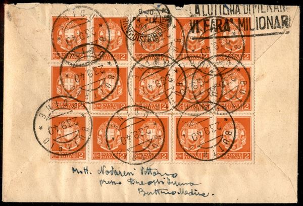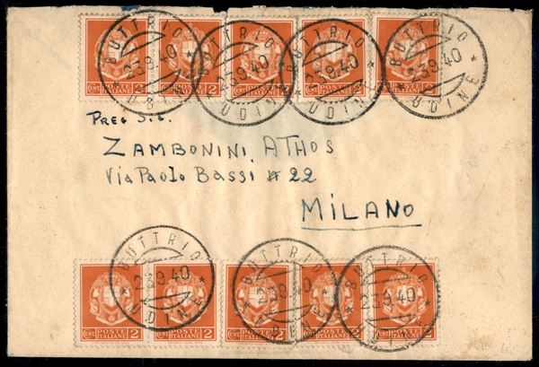 2 cent Imperiale (242A) - 25 pezzi fronte retro su busta da Buttrio (Udine) a Milano del 23.9.40