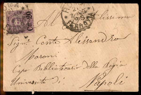 20 cent su 50 (58) - bustina da Roma a Napoli del 21.7.1890