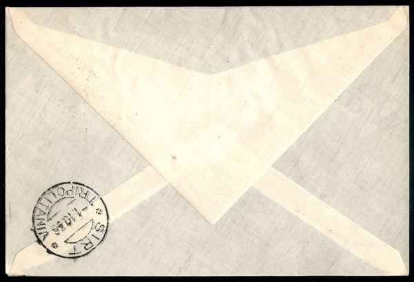 50 cent (28 - Aerea) + complementari (46 coppia) su aerogramma FDC (1 ottobre 1936) da Tripoli a Sirte nel primo giorno d'uso