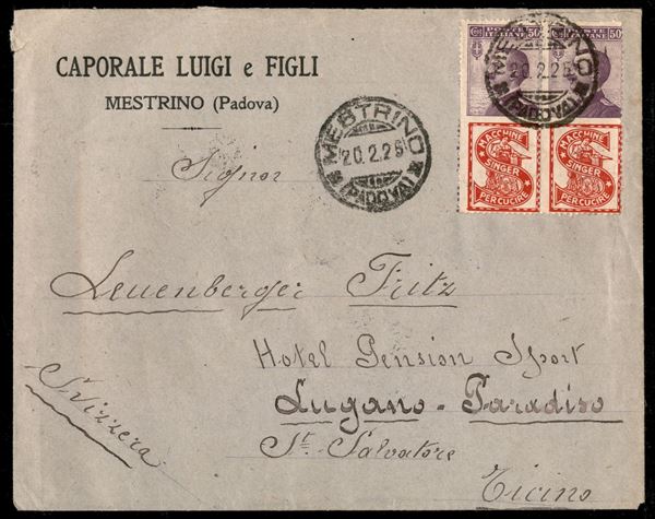 50 cent Singer (16) in coppia su busta da Mestrino per la Svizzera del 20.2.25