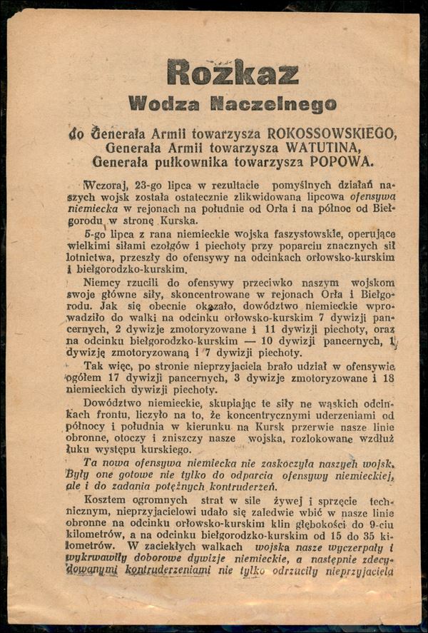 Blue Division - Volantino "Rozkaz Wodza Naczelego" stampato in Russia - molto bello