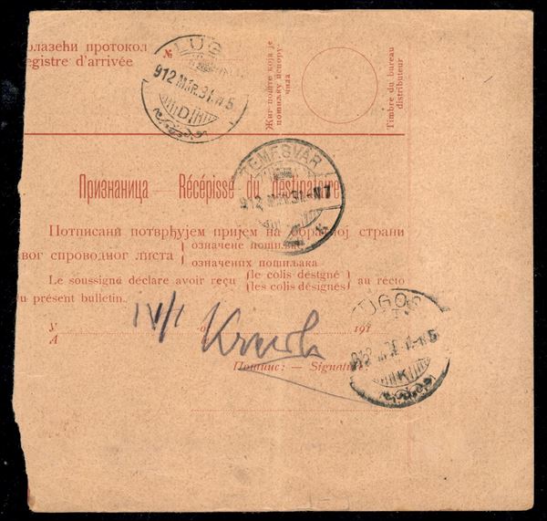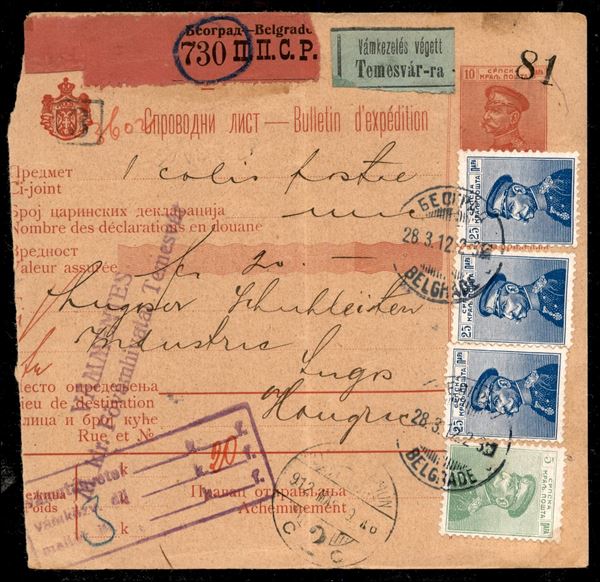 Bollettino di Spedizione da Belgrado per Lugos (Ungheria) del 28.3.1912