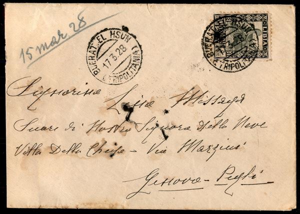 Buerat El Hsum (Tripolitania) 17.3.28 - 50 cent (64) su busta per Genova