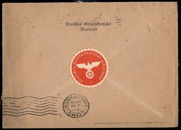 Busta affrancata con due 25 cent Imperiale (248) uno usato come tassa in arrivo (Como/Portalettere) da Milano del 9.4.42