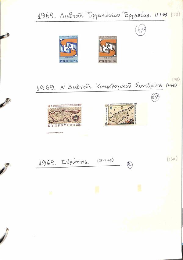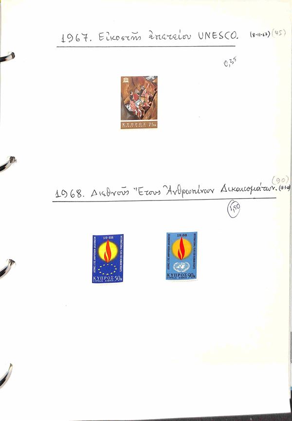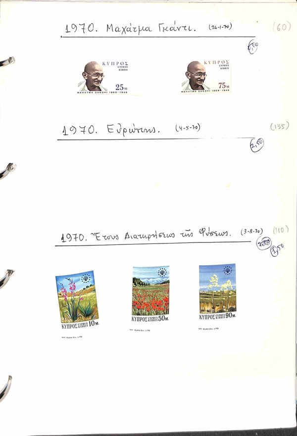 CIPRO - 1967/1978 - Collezione di oltre 250 valori nuovi applicati con linguella su fogli artigianali in un album ad anelli - da esaminare