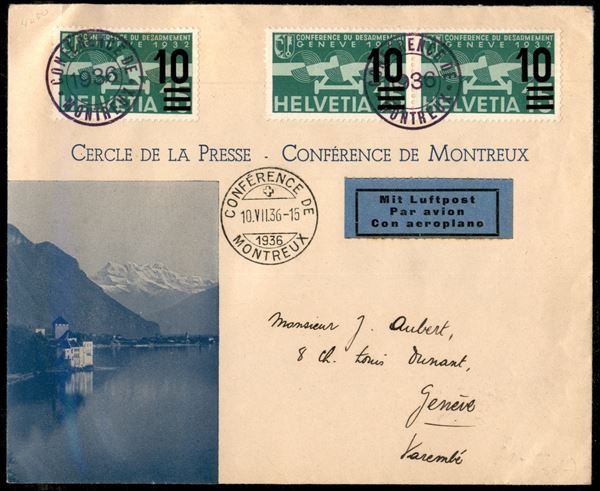 Conferenza di Montreaux - aerogramma per Ginevra del 10.7.36 con tre 10 cent su 15 (285)