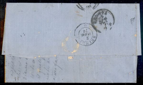 Coppia del 10 soldi (4) su lettera da Costantinopoli a Genova del 17.1.1874 - un valore mancante